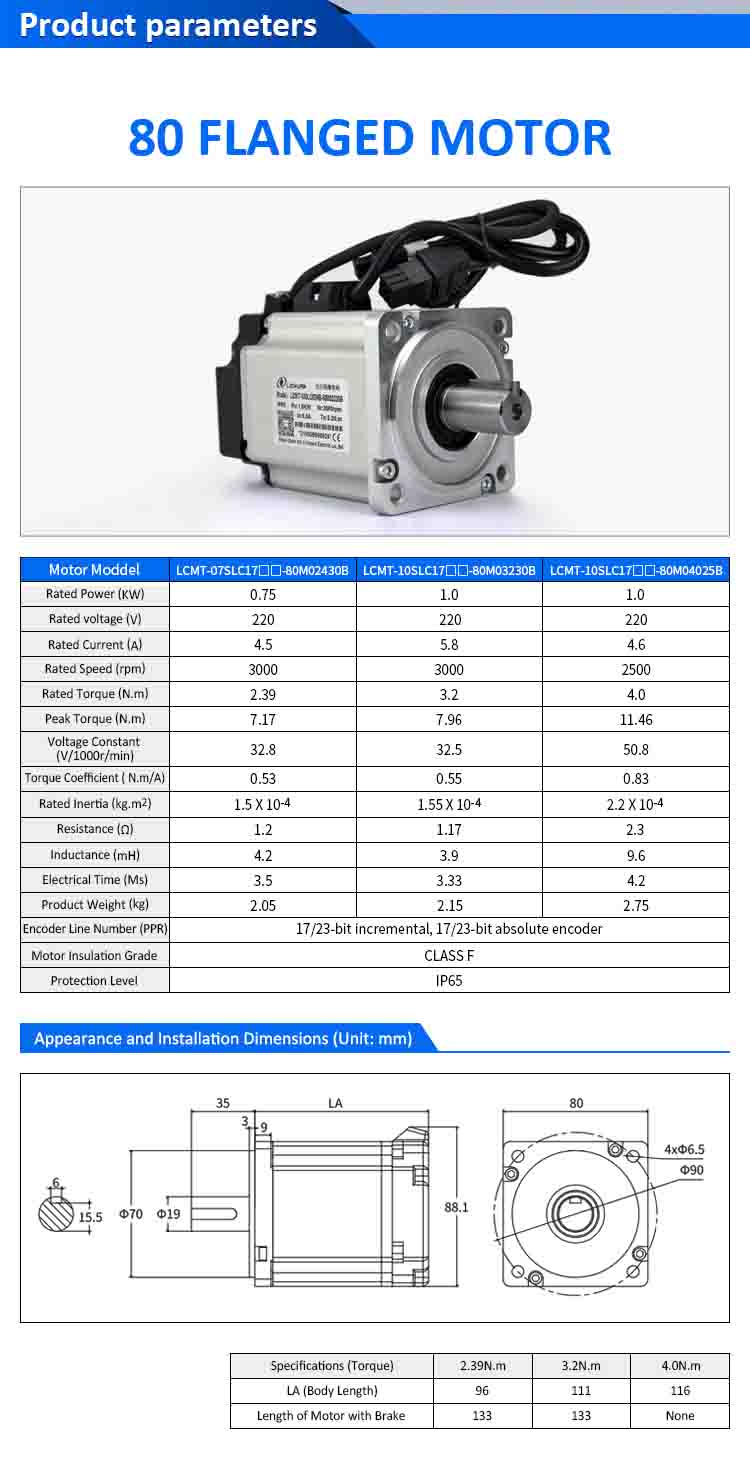 | మోటార్ మోడల్ | LCMT-07SLC17-80M02430B | LCMT-10SLC17-80M03230B | LCMT-10SLC17-80M04025B |