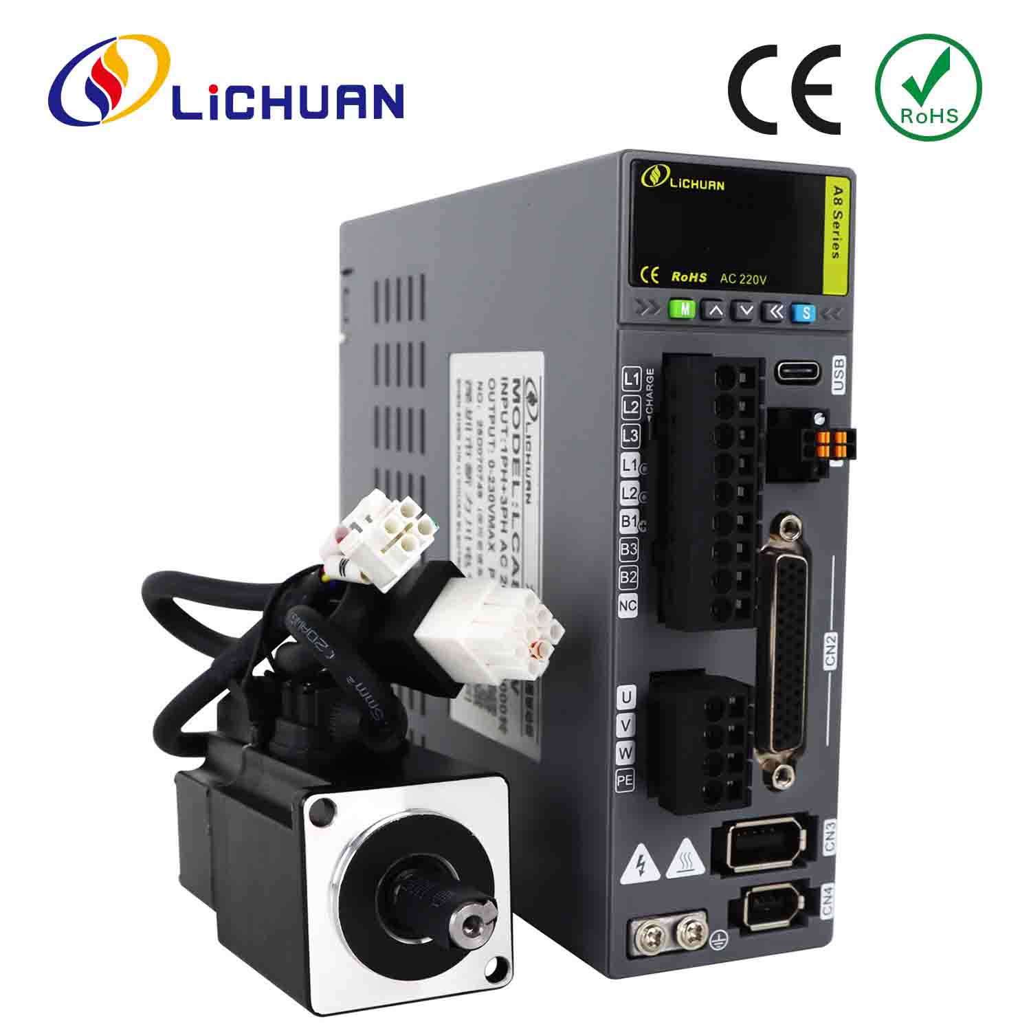 లిచువాన్ AC సర్వో మోటార్ డ్రైవర్స్ కిట్ A8 అధిక ఖచ్చితత్వం STO ABZ 400W 1.27N.m 220V 2.5A 3000RPM IP65
