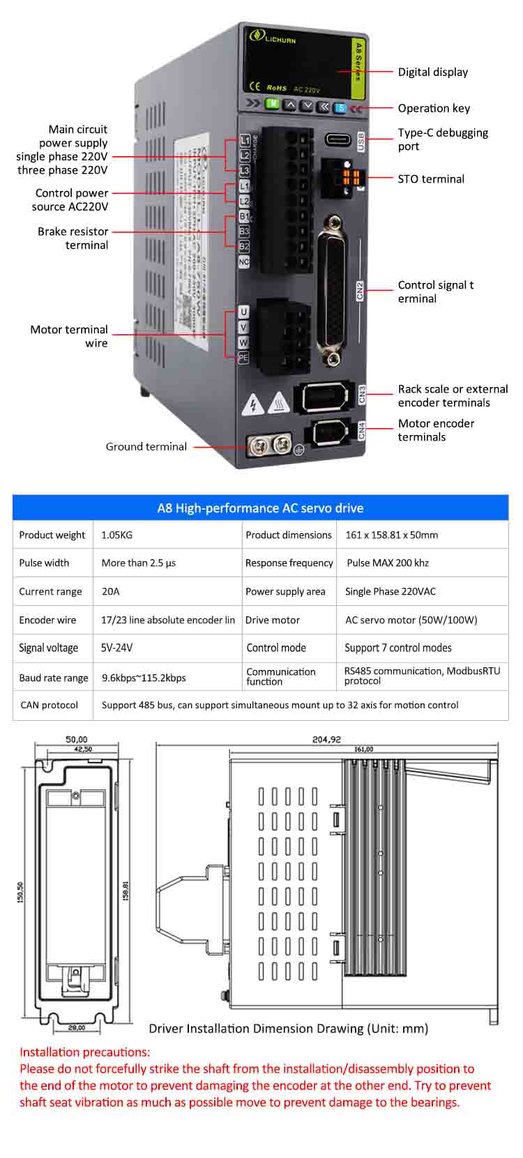 లిచువాన్ A8 సిరీస్ సర్వో మోటార్ డ్రైవర్ ప్రయోజనాలు: