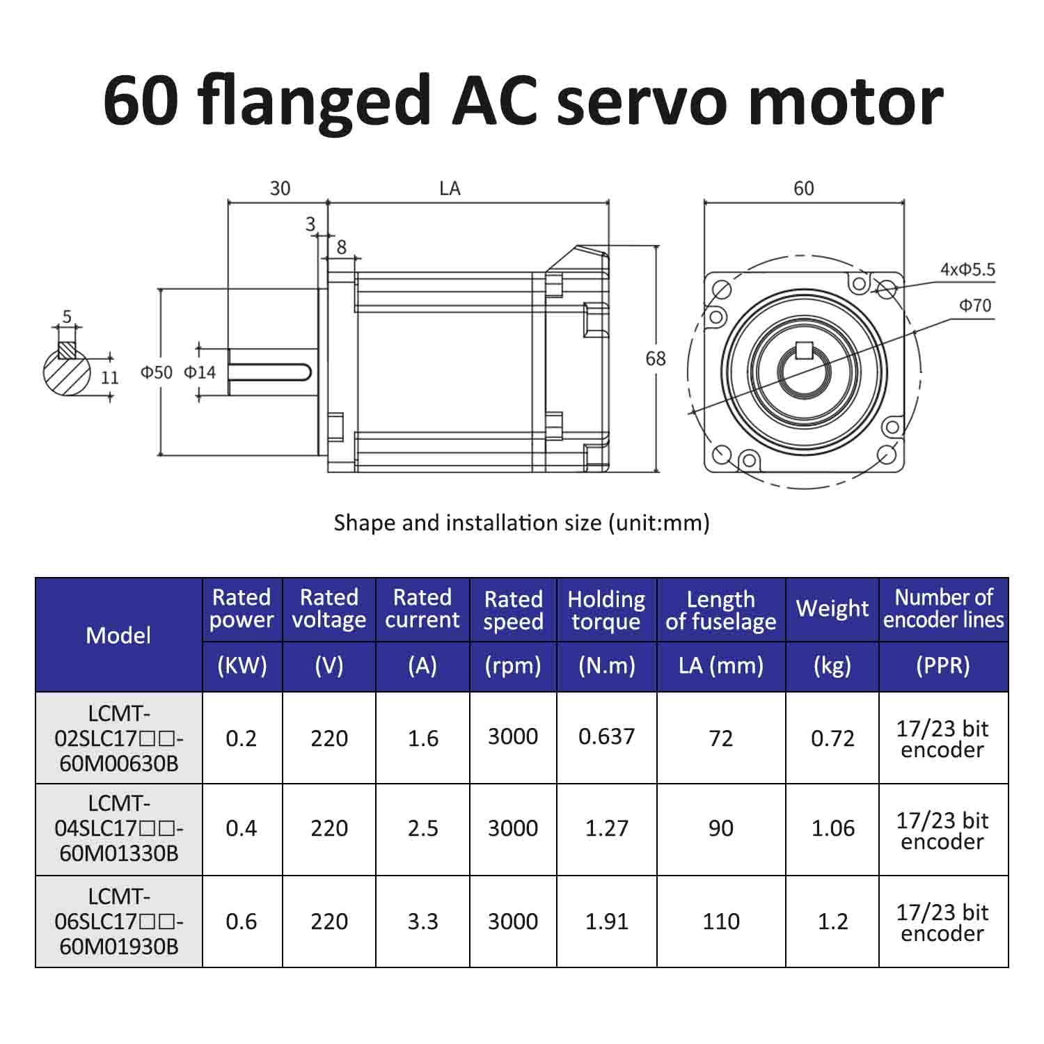 | మోటార్ మోడల్ | LCMT-02SLC17-60M00630B | LCMT-04SLC17-60M01330B | LCMT-06SLC17-60M01930B |
