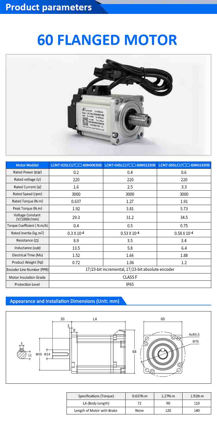 | మోటార్ మోడల్ | LCMT-02SLC17-60M00630B | LCMT-04SLC17-60M01330B | LCMT-06SLC17-60M01930B |