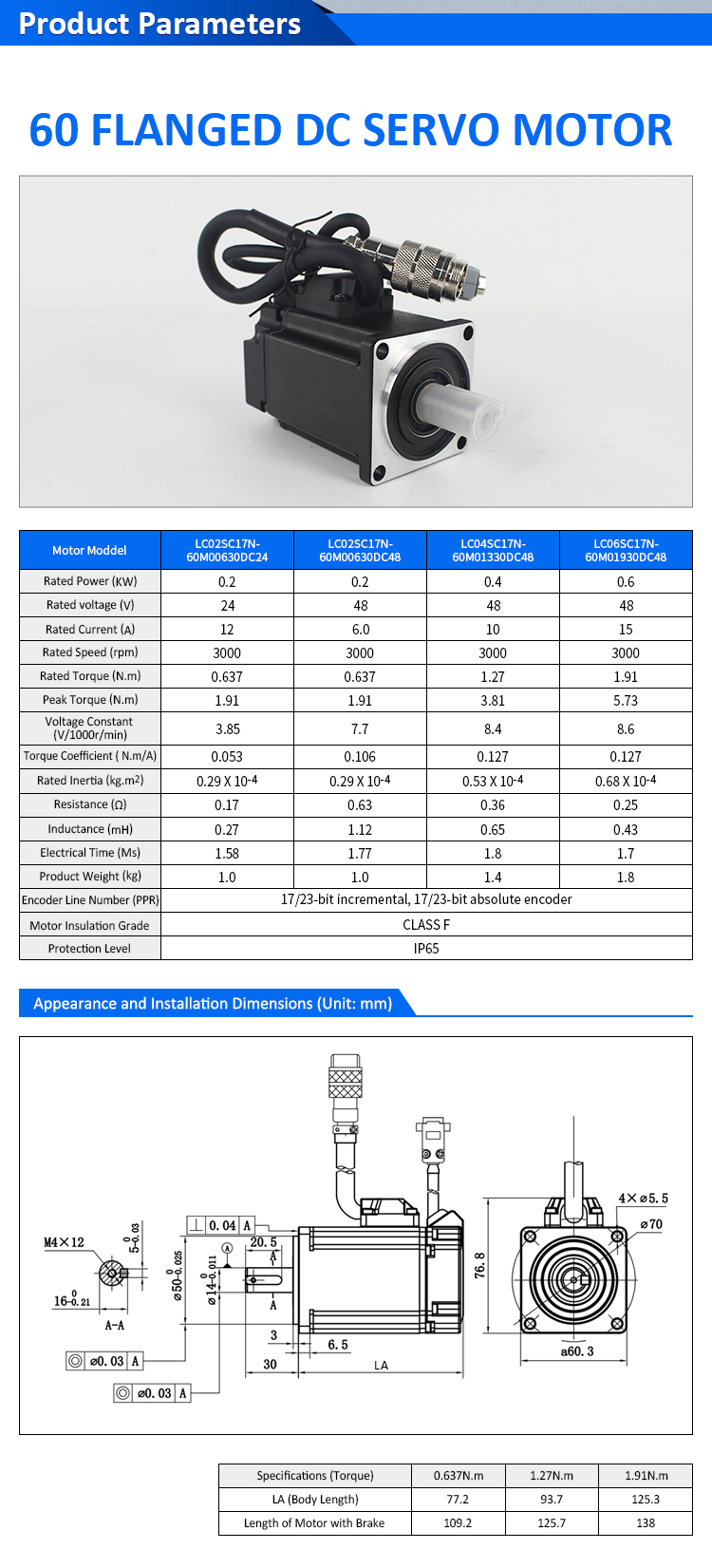 పల్స్/RS485/CANopen/EtherCAT 60 FLANGED 400W తక్కువ వోల్టేజ్ DC సర్వో మోటార్ డ్రైవర్స్ కిట్