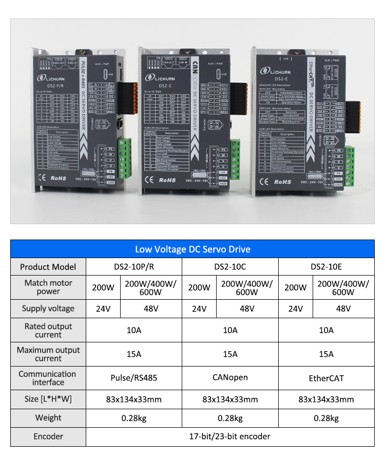పల్స్/RS485/CANopen/EtherCAT 80 FLANGED 750W తక్కువ వోల్టేజ్ DC సర్వో మోటార్ డ్రైవర్స్ కిట్